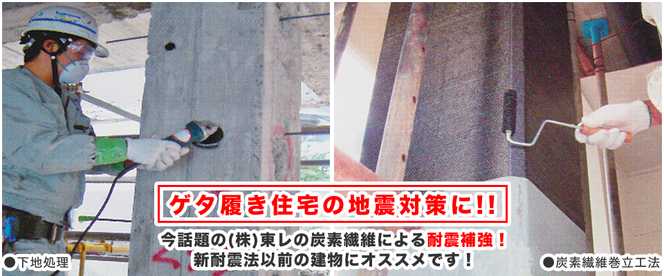 - ★1階がピロティ(ゲタ履き)で駐車場になっている建物の柱・梁を炭素繊維で補強
